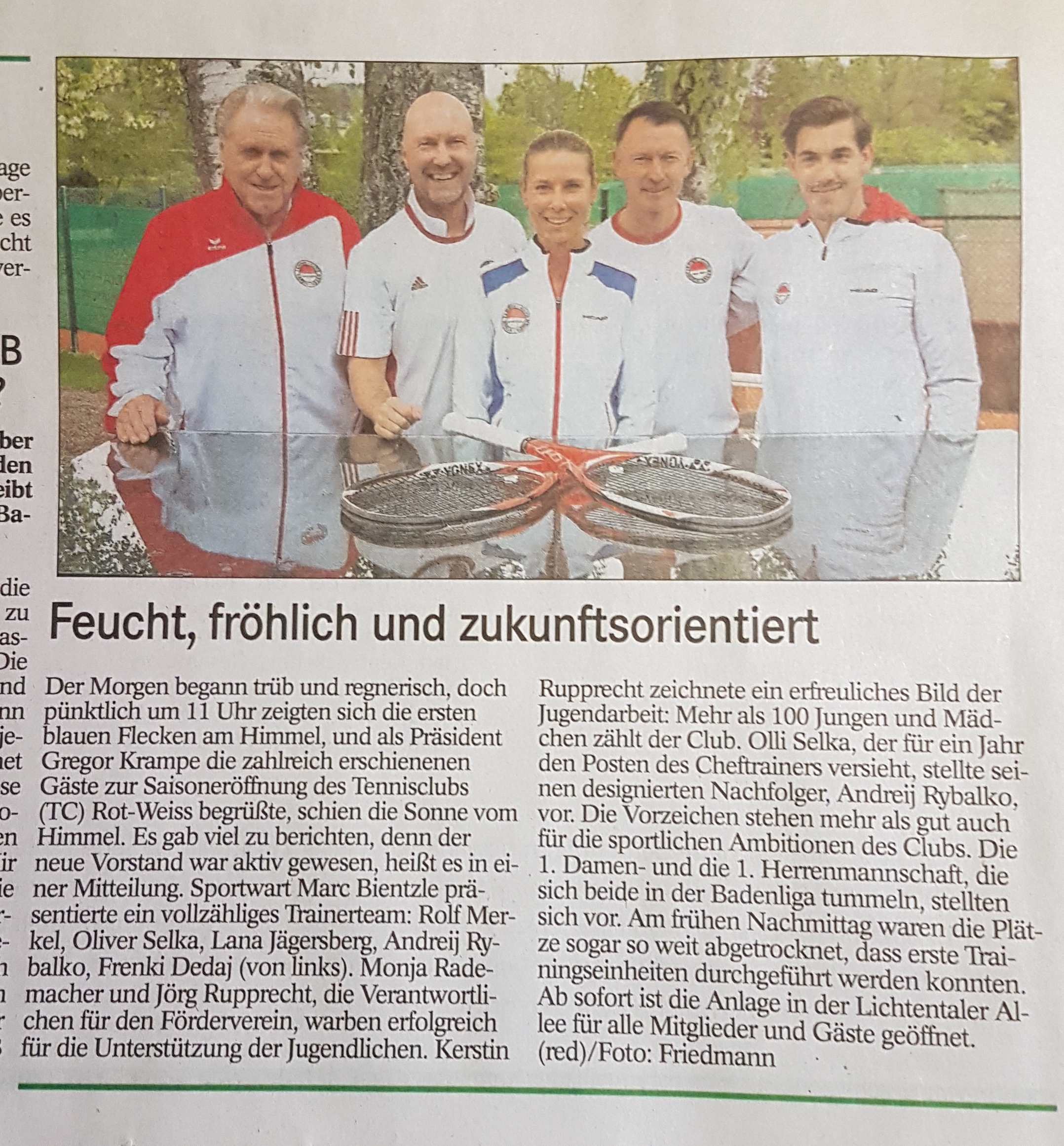 Die Kooperation zwischen den Volksbanken/Raiffeisenbanken und dem TC Rot-Weiß funktioniert derart reibungslos, dass auch auf die nächsten Jahre hinaus diese Partnerschaft bestehen wird. Vielleicht werden wir in den kommenden Jahren vermelden können, dass dieser oder jene Tennisspieler/in ihre ersten Erfolge auf nationaler oder internationaler Ebene in einem Baden-Badener Tennisclub begonnen hat.